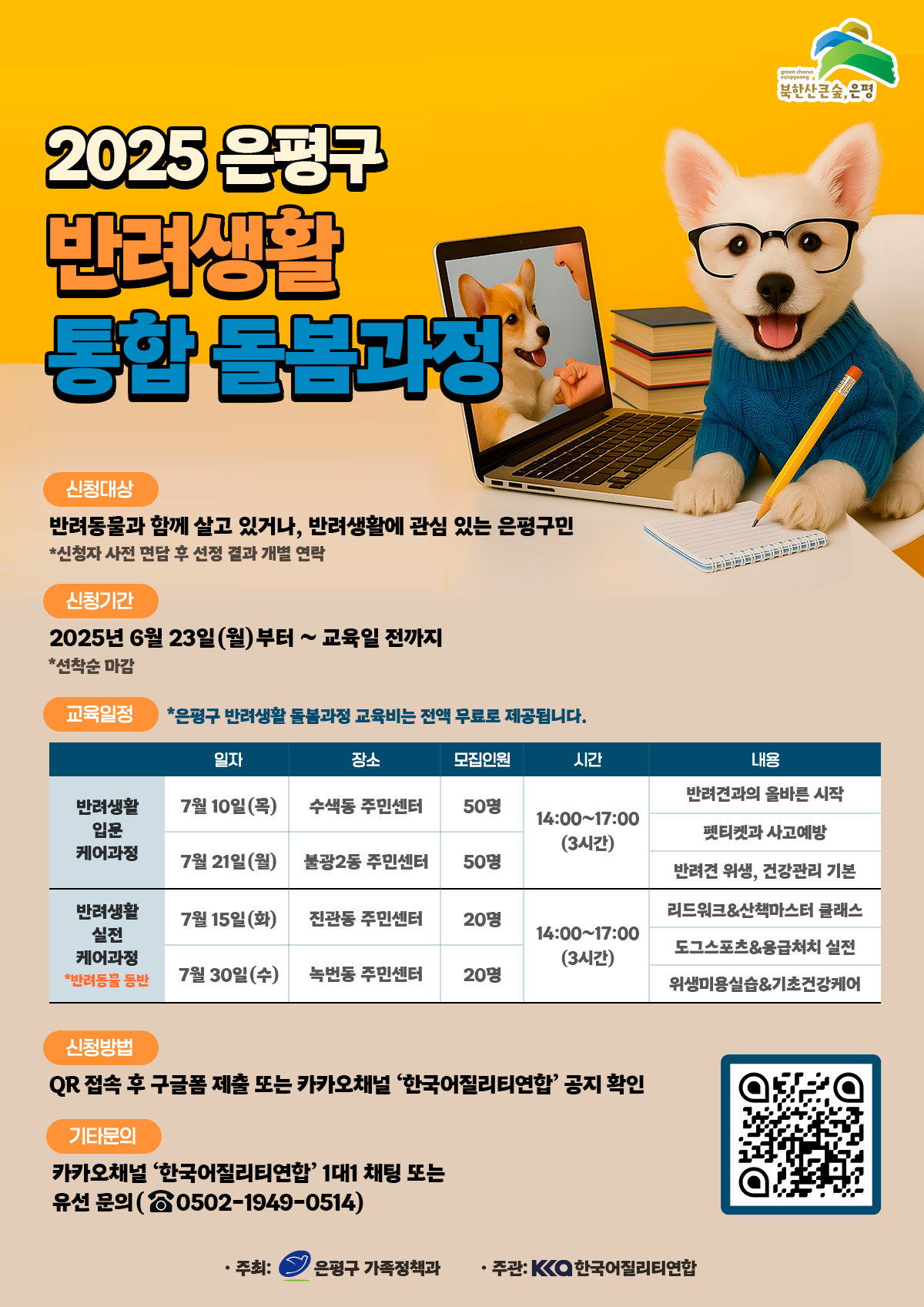 서울시 은평구에서는 반려동물과의 건강하고 책임 있는 공존을 돕기 위해 ‘반려생활 통합 돌봄과정’ 교육을 운영합니다.
