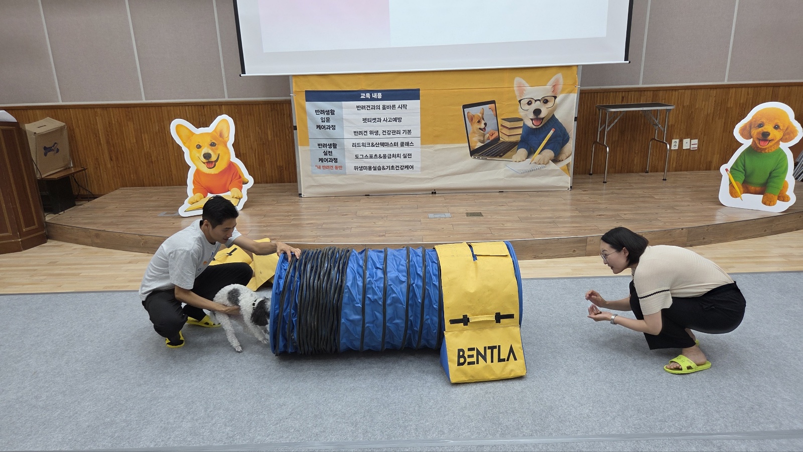 ▲실전 돌봄 과정 (진관동, 녹번동) : 반려견과 함께 참여하는 실습형 프로그램으로, 산책 훈련, 도그스포츠 체험, 응급처치법, 위생 미용 실습 등 실생활에 유용한 교육을 제공하며, 회차별 20명으로 소규모로 운영됩니다.